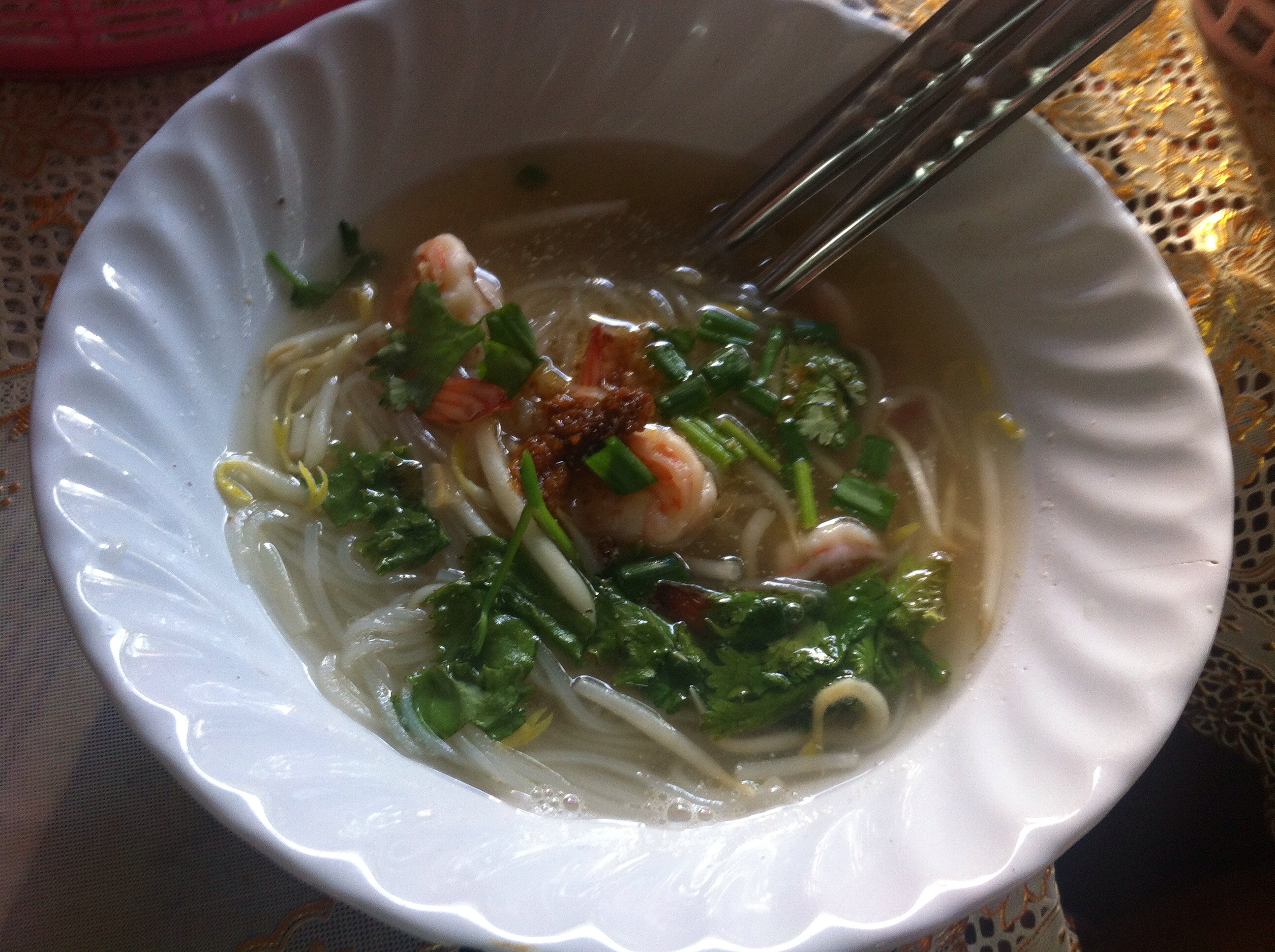 Our locals must try noodle soup with funky shrimp.